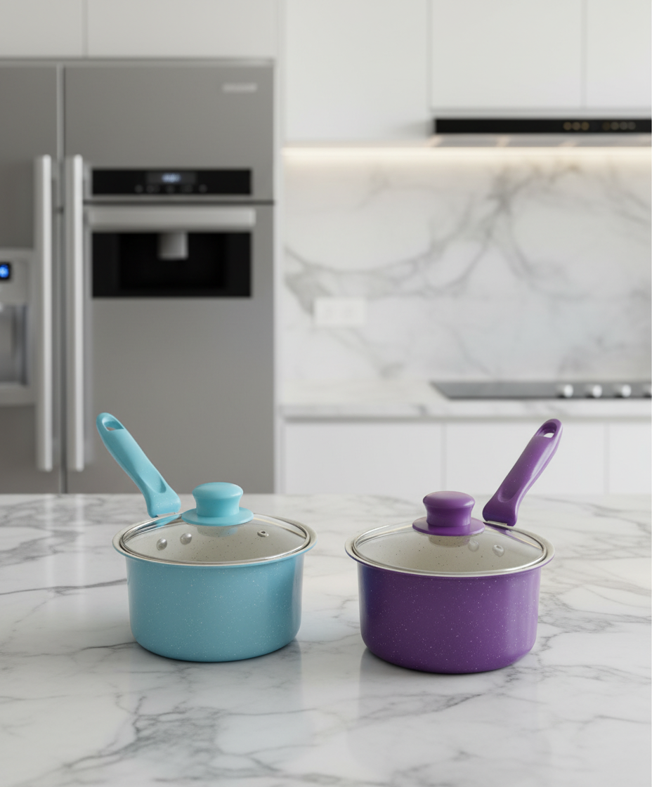 Panci Susu 16cm Anti Lengket + Tutup Kaca | Milk Pan Serbaguna untuk MPASI, Susu & Saus – Warna Pastel